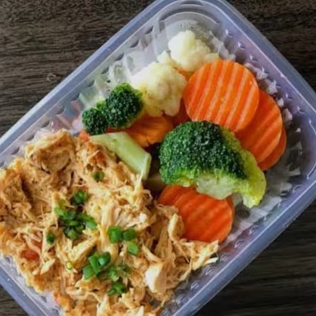 Frango Desfiado E Mix De Legumes + Água De Coco