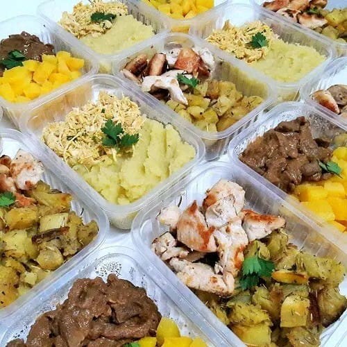 10 Marmitas congeladas De frango ou carne moída acompanha arroz integral e salada de legumes 10 Marmitas congeladas De frango ou carne moída acompanha arroz integral e salada de legumes Serve 4 pessoas