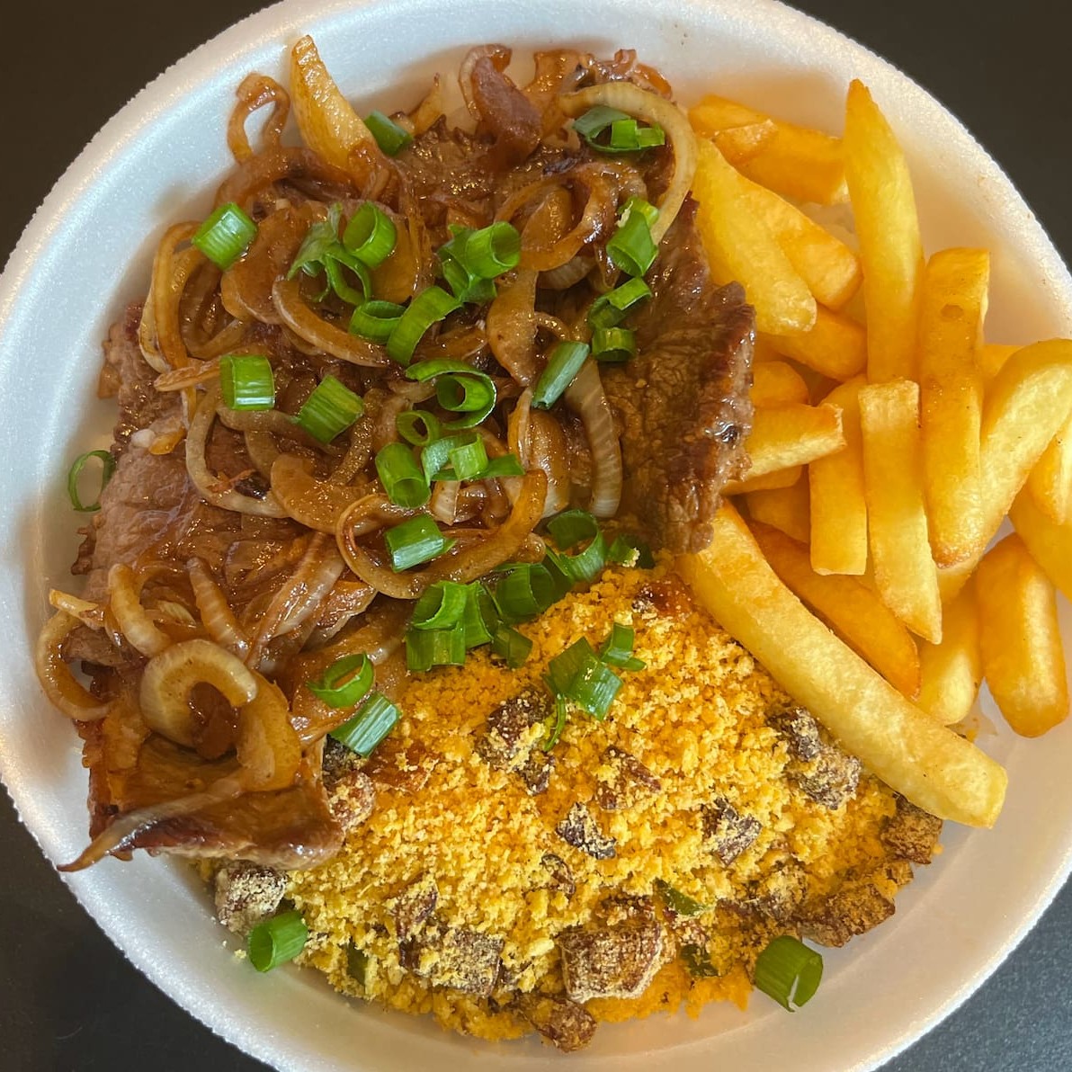 Bife De Alcatra Acebolado Com Batatas Fritas
