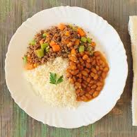 Arroz, feijão, carne moida