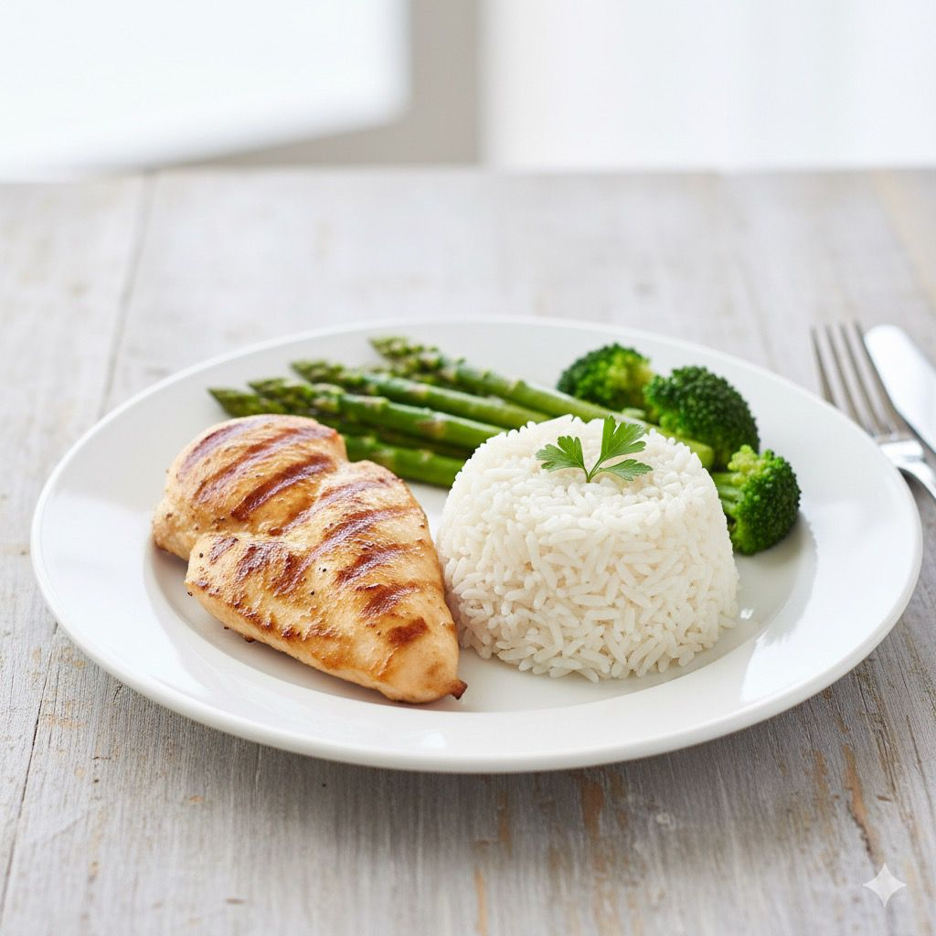 Filé de frango grelhado e legumes cozido