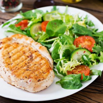 File de frango grelhado e salada (alface, tomate, pepino e repolho )