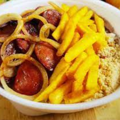 Acompanha Arroz branco soltinho, feijão carioca fresquinho, hamburguer , um ovo frito, fritas