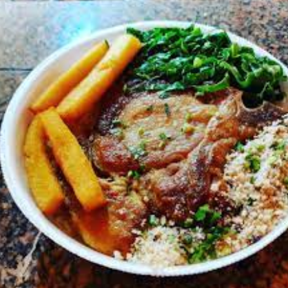 Acompanha Arroz branco soltinho, batata palha e uma salada fresca (marmitex de 500ml)