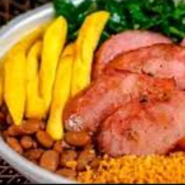 Acompanha: Arroz branco soltinho, feijão carioca fresquinho, farofa com bacon e calebrsa, legumes do dia e uma salada fresca