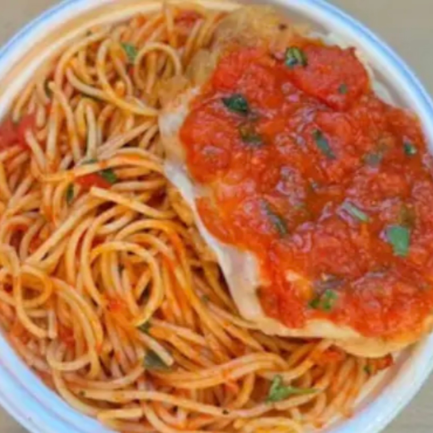 Marmita De Espaguete Ao Sugo Com Frango A Parmegiana