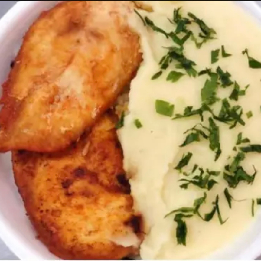 Marmita De Filé De Frango A Milanesa Com Pure De Batatas