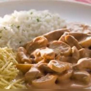 Delicie-se com a nossa Marmita de Strogonoff de Frango, uma especialidade da categoria 'Pratos Rápidos'. Este prato é uma verdadeira explosão de sabores, com pedaços generosos de frango macio e suculento, mergulhados em um molho cremoso e encorpado, com um toque leve e equilibrado de mostarda. Acompanhado de um arroz branco soltinho e batata palha crocante, esta marmita é a opção perfeita para uma