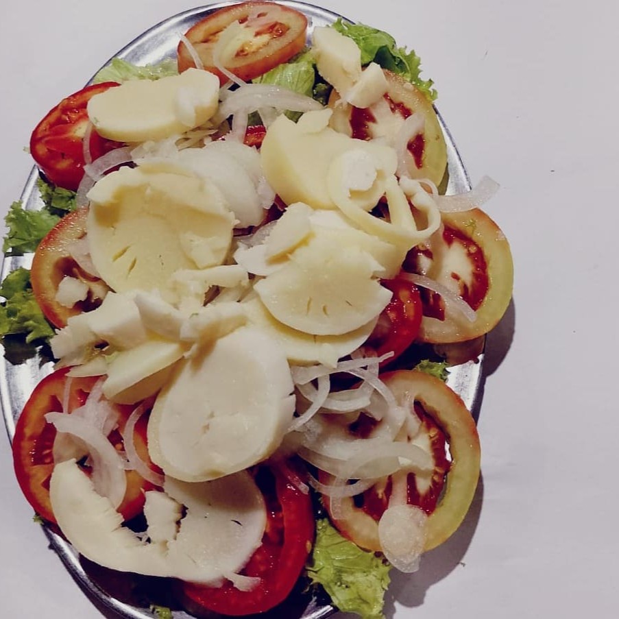 Uma porção generosa de vinagrete, nossa especialidade na categoria 'Porções'. Este prato é uma mistura vibrante de cebola, pimentão, tomate e coentro, finamente picados e marinados em vinagre de alta qualidade. O vinagrete é fresco, crocante e perfeitamente ácido, trazendo um contraponto delicioso para qualquer refeição. Uma opção saudável e agradável ao paladar, que complementará perfeitamente o
