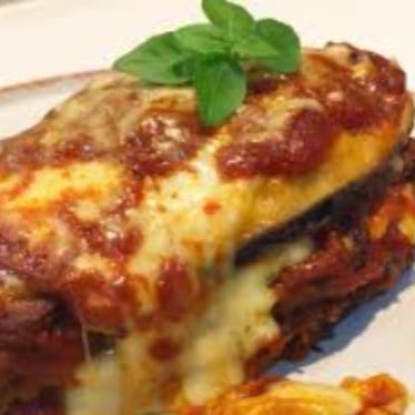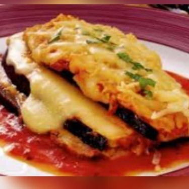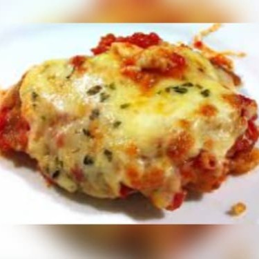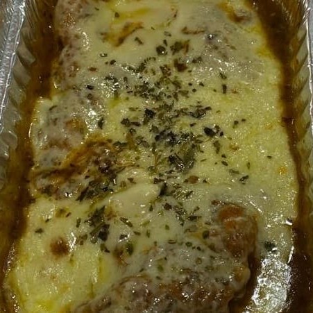 Deliciosa Marmita de Berinjela à Parmegiana, da categoria 'Mini Parmegianas'. Este prato é um verdadeiro espetáculo de sabores, trazendo a berinjela empanada, coberta com um suculento molho de tomate caseiro e finalizada com uma generosa camada de queijo derretido. Para completar, a marmita acompanha um arroz branco soltinho e fritas crocantes por fora e macias por dentro. Uma combinação irresistí