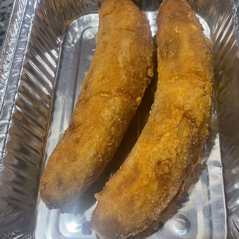 Deliciosa porção de bananas à milanesa. São selecionadas as melhores bananas, frescas e firmes, que depois são empanadas com uma mistura leve e crocante, fritas até atingirem um dourado perfeito. O resultado é uma irresistível combinação de sabores e texturas que agradam o paladar. Perfeito para quem ama uma mistura de doce com salgado. Uma porção generosa que é a companhia ideal para qualquer mom