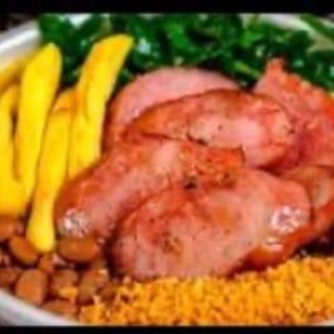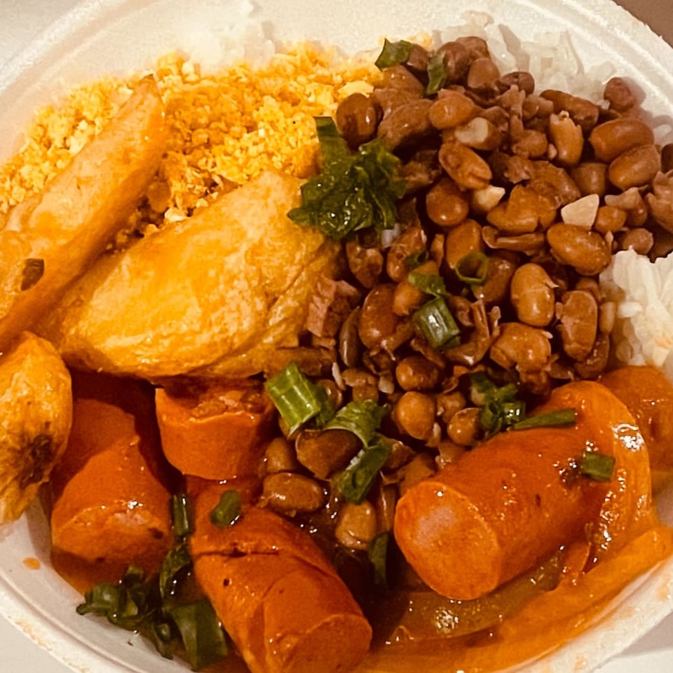 Arroz,feijão,farofa e frango frito com alho e oleo