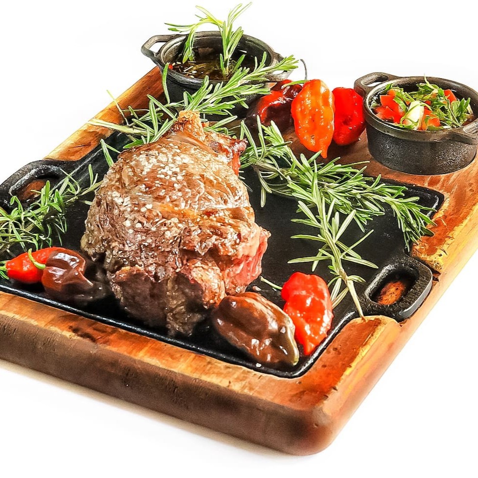 Alcatra Grelhada acompanha arroz, feijão, salada e fritas.