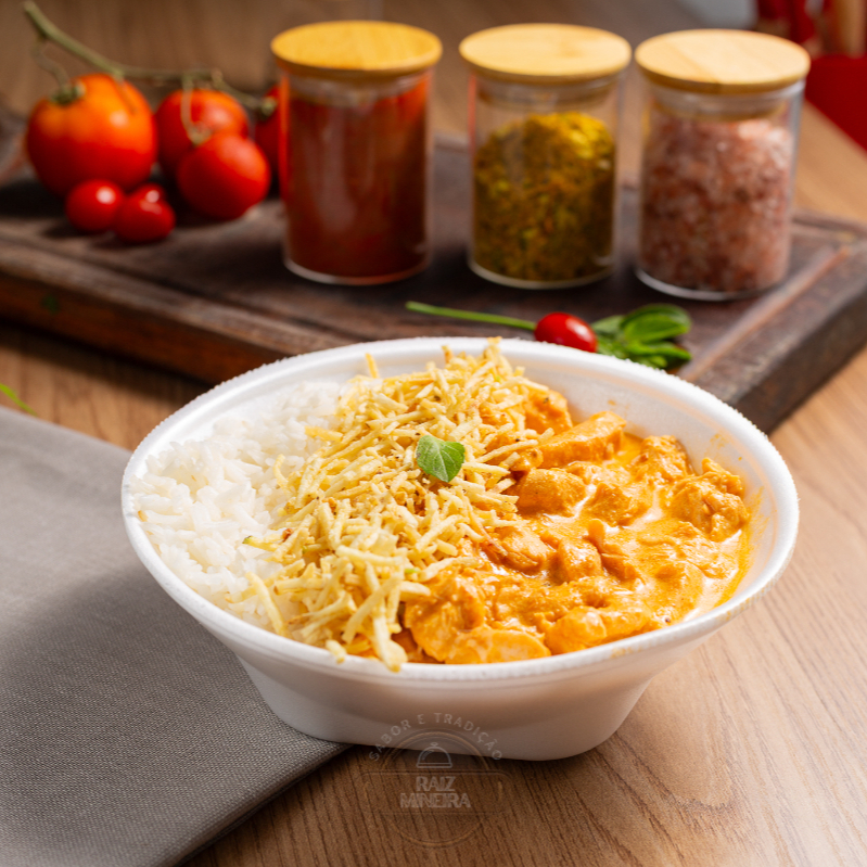 Marmita - Estrogonofe de Frango com Arroz e Batata frita *foto meramente ilustrativa
