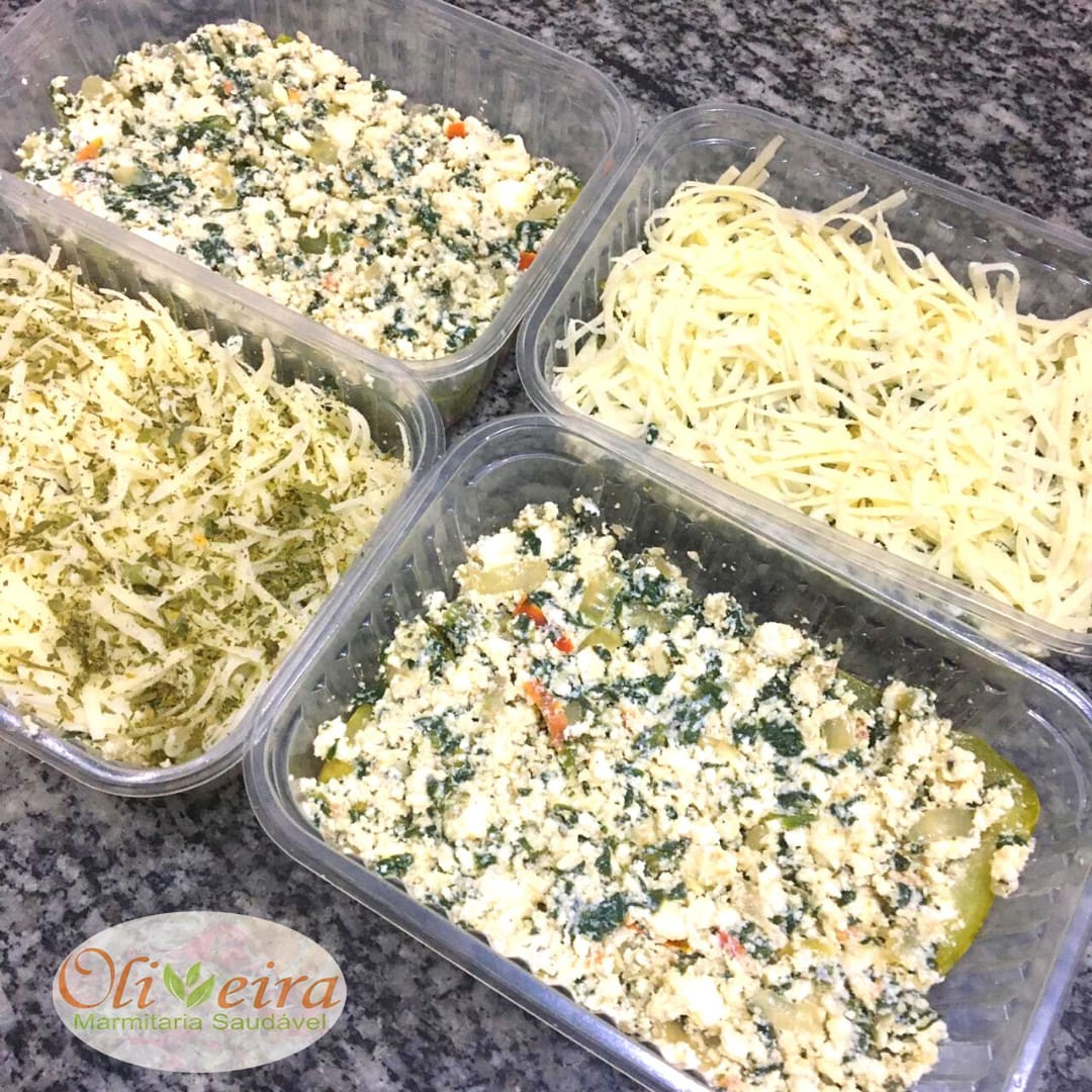 Delícia marmita de barquinha de abobrinha, recheada com ricota e espinafre refogado, coberta com mussarela light - contém de 290g a 300g