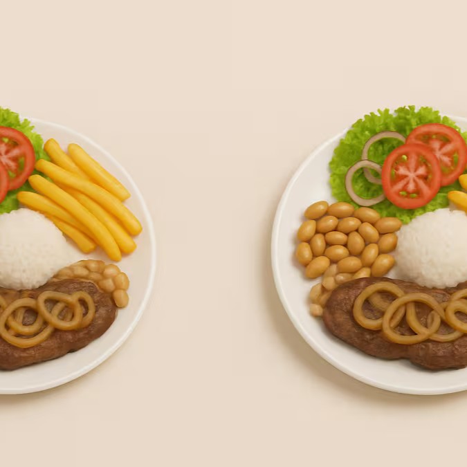 Acompanha: arroz, feijão, macarrão, legumes e frituras do Dia ( berinjela, batatas etc ) (Foto ilustrativa)