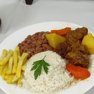 Acompanha: arroz, feijão, macarrão e frituras do Dia. ( batata, berinjela, banana etc... ) ( foto ilustrativa )