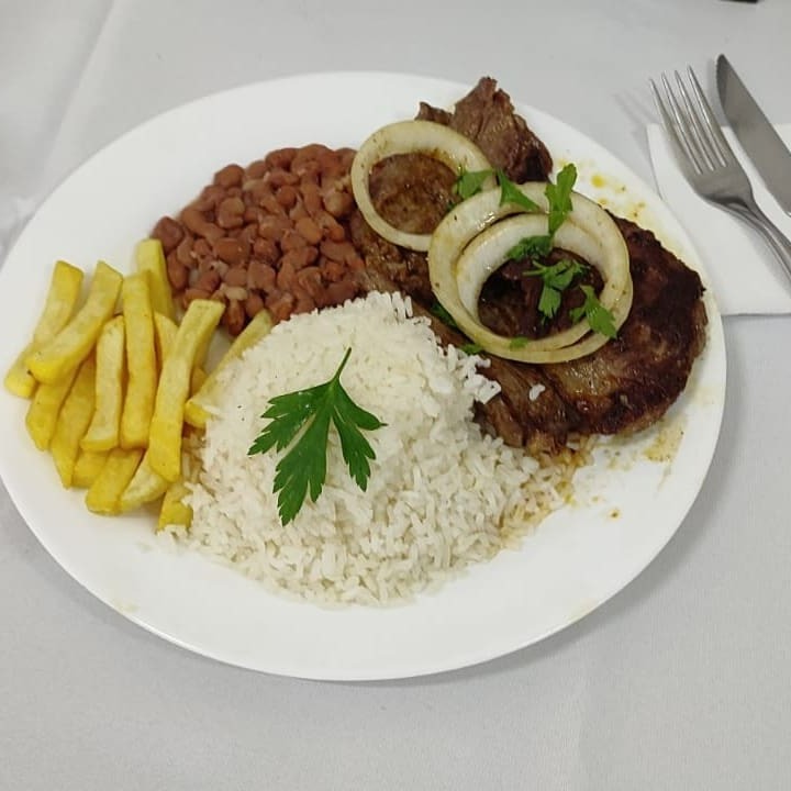 Acompanha;arroz,feijão e batata frita (foto ilustrativa)