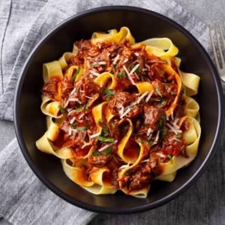 Macarrão talharim artesanal servido com molho pomodoro e manjericão, combinado com carne moída bem temperada, criando um prato delicioso e reconfortante. Finalizado com mussarela salpicado por cima para um toque de frescor. Uma verdadeira explosão de sabor em cada garfada! Peso Total Aproximado: 600g