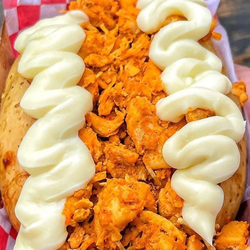 Batata Recheada com manteiga na base bacon fritinho em cubos com Requeijao Cremoso na Borda de Requeijao Cremoso Gratis de alta Qualidade
