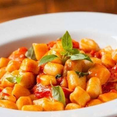 Nhoque 70% batata ao molho sugo tradicional (sem carne) com queijo mussarela salpicado por cima!