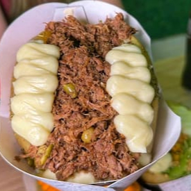 Batata Recheada De Costela bovina bem temperadinha desfiada com muito queijo por cima e Borda de Requeijao Gratis