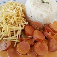 Arroz + Salsicha Ao Molho + Batata Palha 400 Gramas