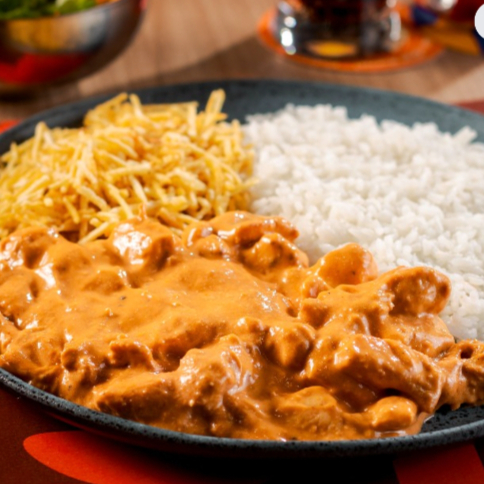 Prove nosso prato do Dia mais pedido no almoço! Nosso strogonoff de frango cremoso acompanhado de Arroz e Batata Palha Não tem champion, caso queira adicione no adicional do prato