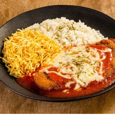 Filé De Frango A Parmegiana + Arroz + Batata Palha 400 Gramas