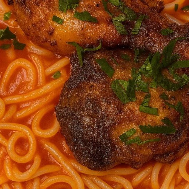 Macarrão Com Frango Assado. Por Mais 15,99 Leve Uma Calabresa Acebolada Pequena