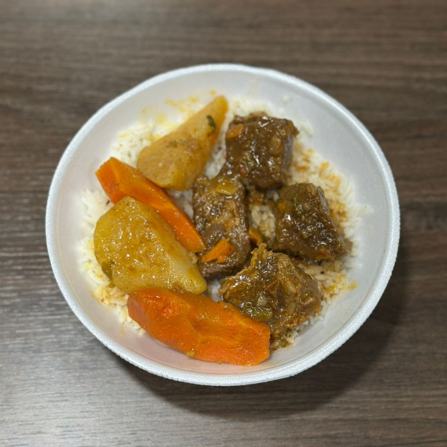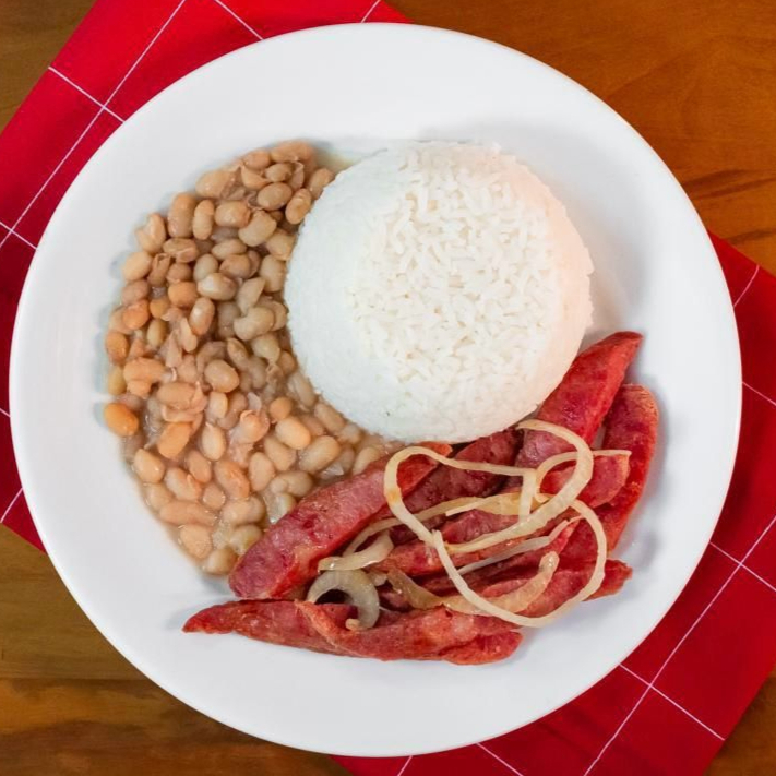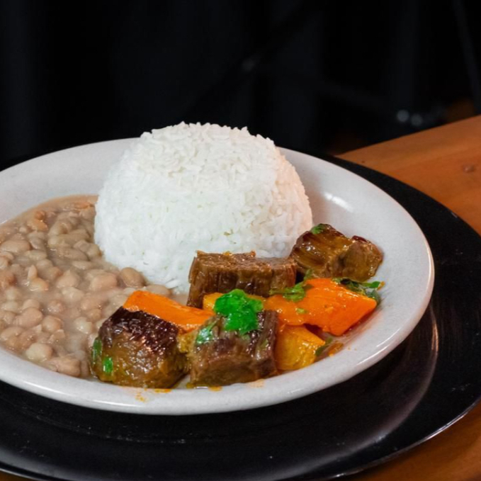 Arroz, Feijão, Carne Bovina cozinha com Legumes