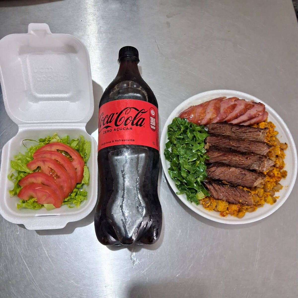 Combo - Marmitex Misto, Carne Assada E Linguiça + Coca-cola Sem Açuca 1l