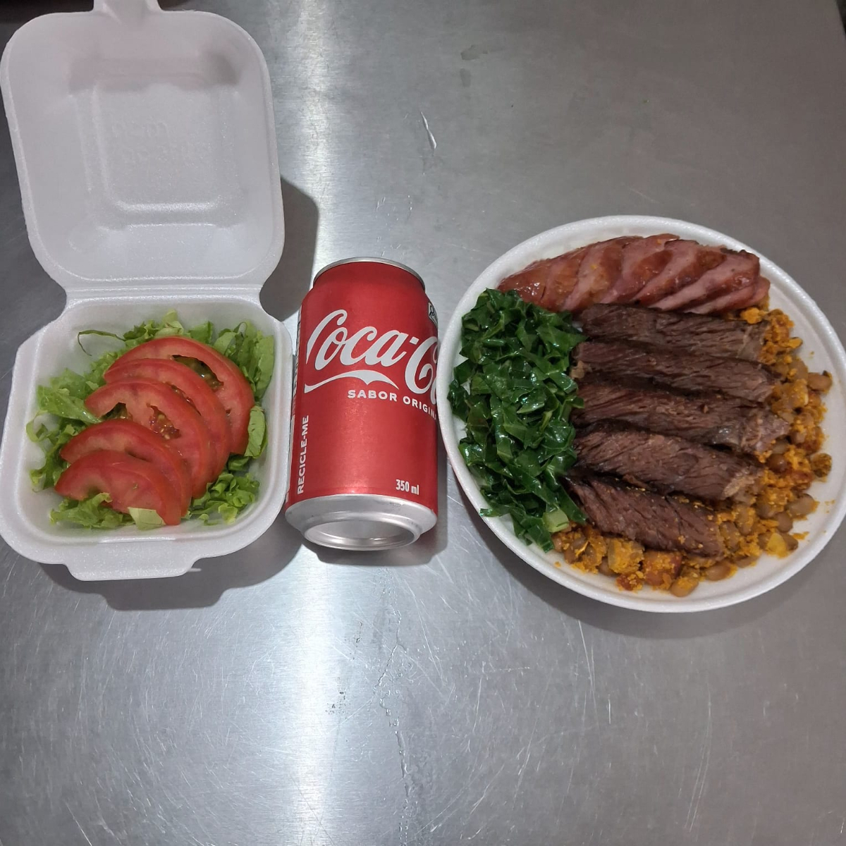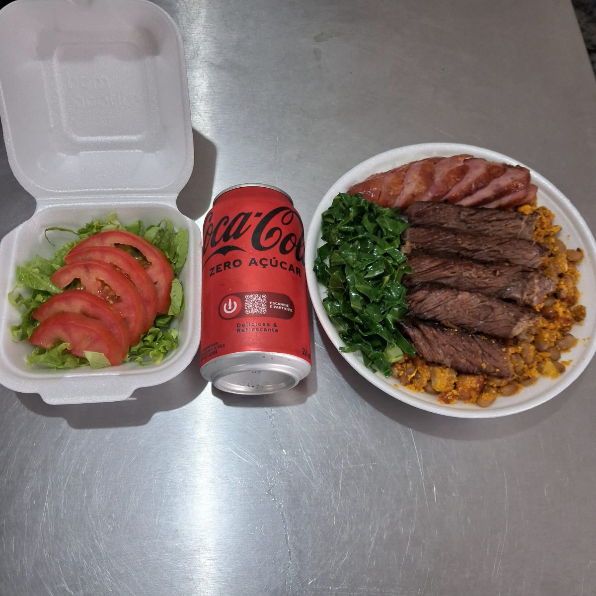 Combo - Marmitex Misto, Feijão Tropeiro Carne Assada E Linguiça + Coca-cola Sem Açuca 350ml