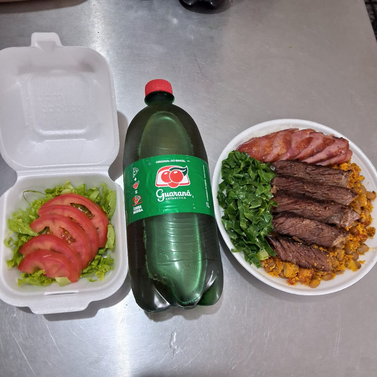 Combo - Marmitex Misto, Feijão Tropeiro, Carne Assada E Linguiça, Aprox. 500g + Guaraná Antártica 1l