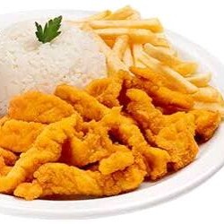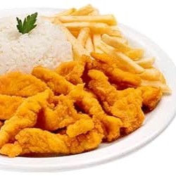 Frango empanado com fritas , acompanhado de arroz branco, feijão e fritas. *** NÃO ACOMPANHA SALADA