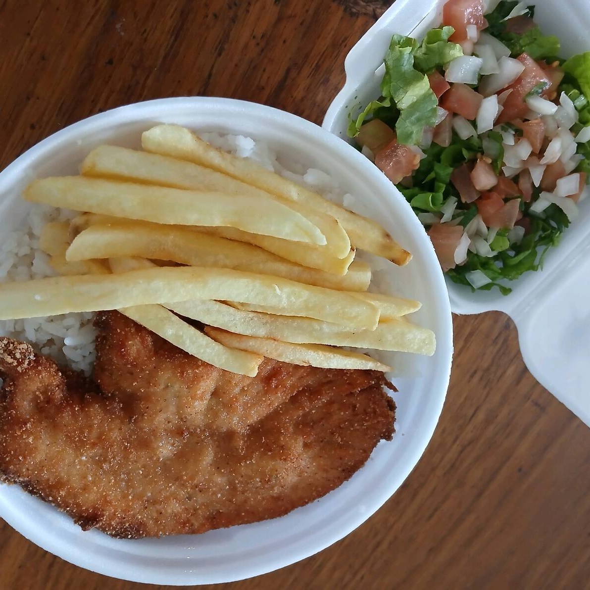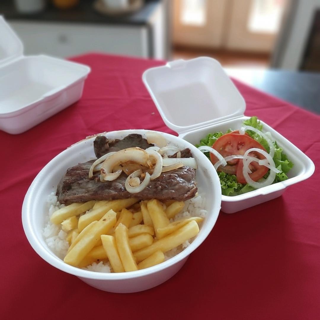 Acompanha Arroz, Feijão e Batata Frita