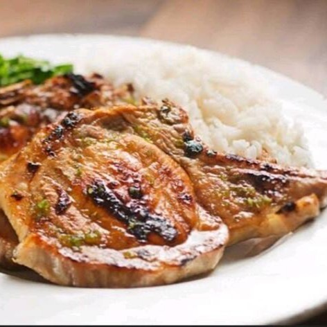Bisteca de porco suculenta. Acompanha, arroz, feijão