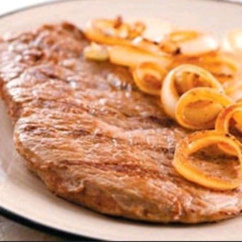 Bife acebolado. Acompanha, arroz, feijão