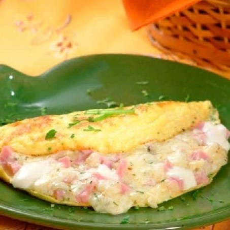 Omelete (queijo, presunto, coentro, cebola, tomate) Acompanha: arroz, feijão