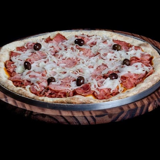 Pizza grande 8 fatias metade calabresa e cebola + metade frango com Catupiry.