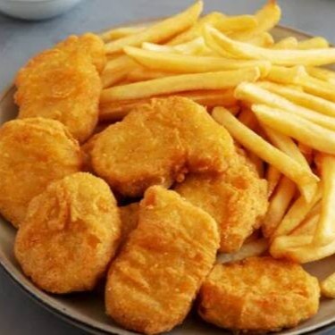 10 unidades de empanados de frango acompanha batata frita e molho da casa.