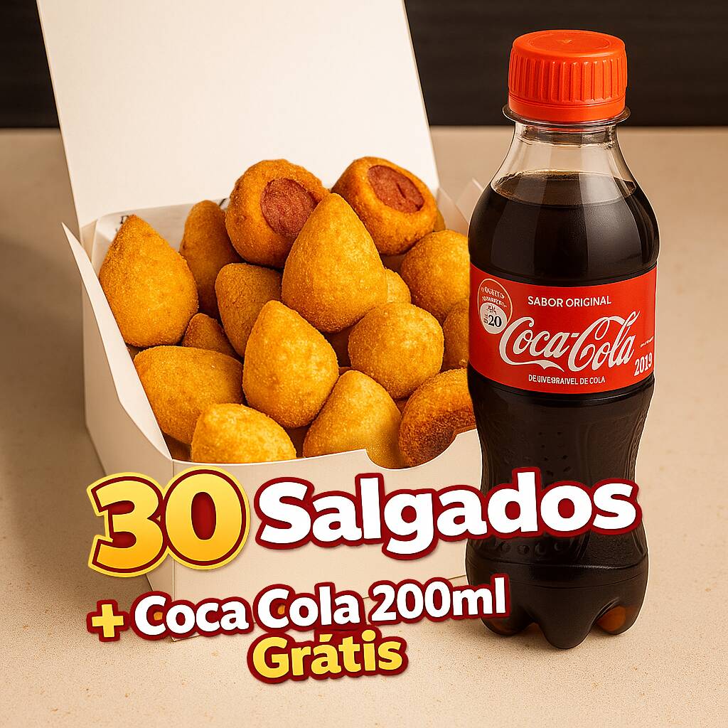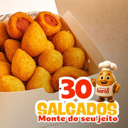 Você escolhe e a gente prepara com carinho! Monte seu combo com 30 salgados mini festa (aprox. 15/16g cada) e aproveite uma seleção irresistível de sabores. Perfeito para amigos ou para matar aquela vontade com muita variedade, praticidade e sabor.