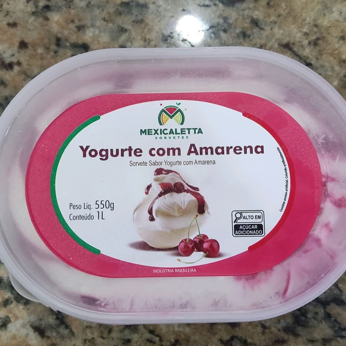 Sorvete sabor yogurte com amarena