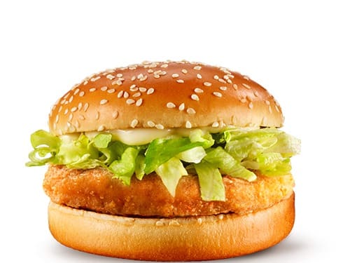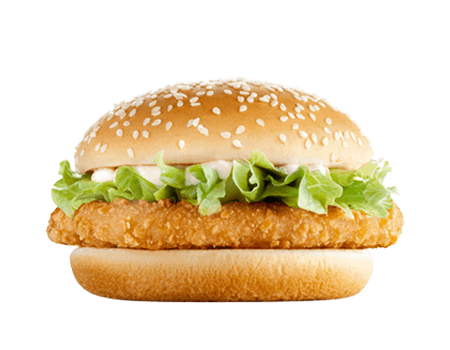 Pão com gergelim, frango empanado e crocante, alface em tiras e a famosa maionese do mcdonald's.