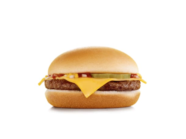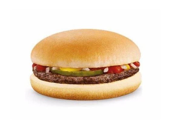 Um hambúrguer feito com pura carne bovina, envolvida por duas fatias de queijo temperado com ketchup, mostarda, cebola e picles, acompanhamento e bebida. Consulte informações nutricionais do refrigerante 350ml em: mcdonalds.com.br/cardapio/bebidas. Não ut