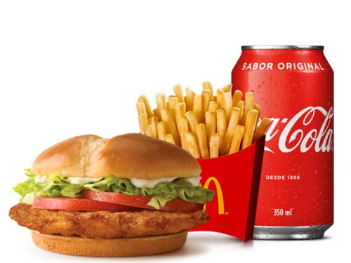 Frango empanado e dourado com molho suave e cremoso, acompanhado de alface crocante num pão com gergelim, acompanhamento e bebida. Consulte informações nutricionais do refrigerante 350ml em: mcdonalds.com.br/cardapio/bebidas. Não utilize o campo de observ