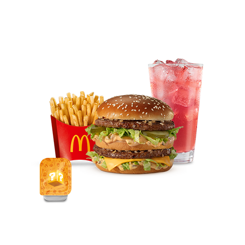 O sabor de Mcdonald's triplamente delicioso. Com três hambúrgueres de carne 100% bovina, queijo derretido, cebola, picles, ketchup e mostarda, McFritas média e bebida