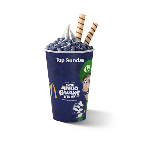 Uma explosão de sabor direto da galáxia do Mario! Feito com leite e bebida láctea sabor baunilha, cobertura e confeitos crocantes no sabor blueberry, é a pedida perfeita para acompanhar essa aventura intergaláctica