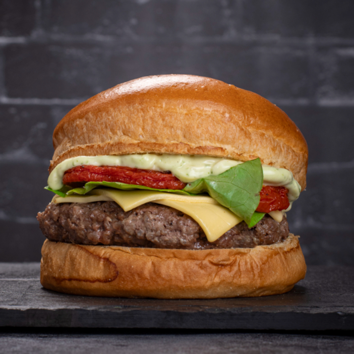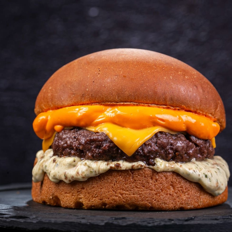 Burguer 140g Cheddar fatiado Creme cheddar Maionese Verde Pão de Brioche Artesanal bem Macio. *Imagem meramente ilustrativa.