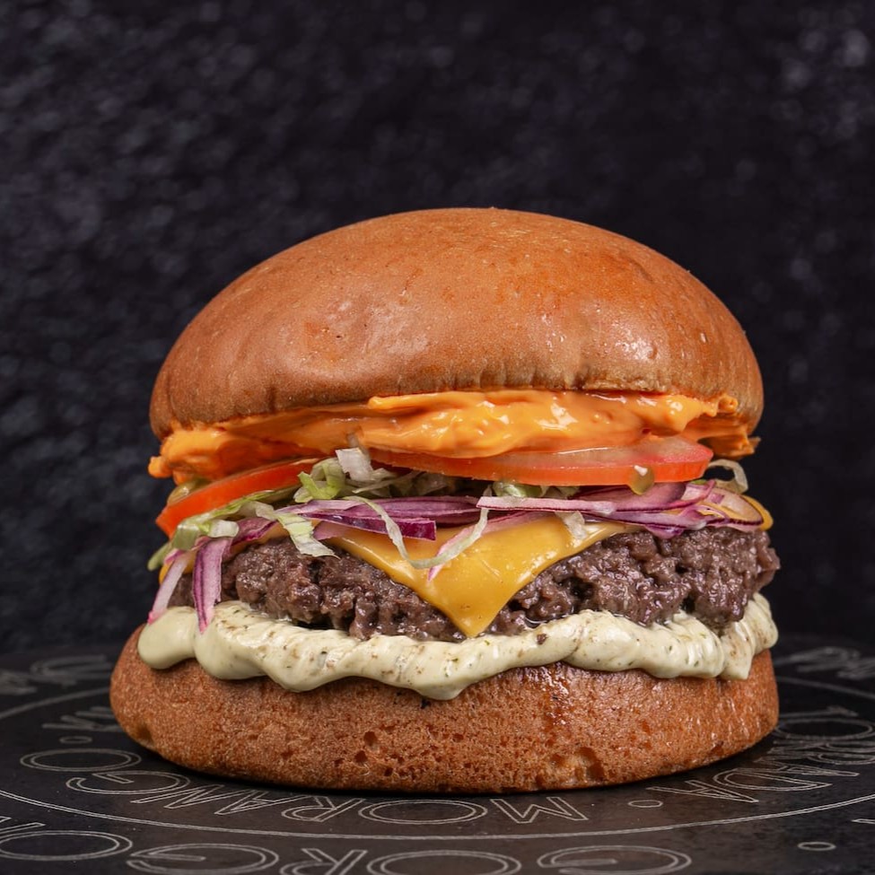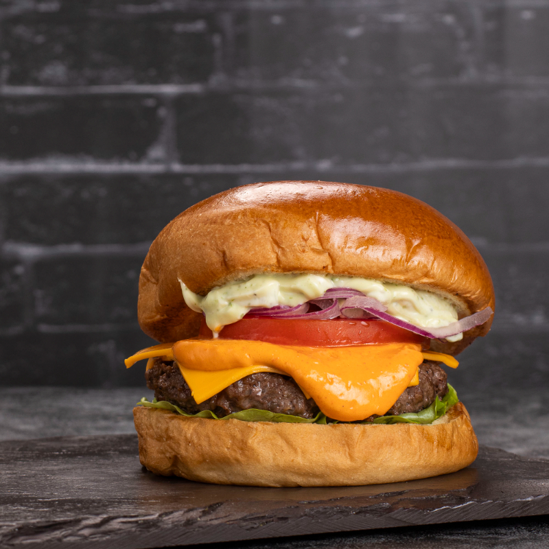 Burguer de 140g Cheddar fatiado Creme cheddar da casa Maionese verde Cebola roxa, Alface e Tomate Fresco Pão de Brioche Artesanal bem macio. *Imagem meramente ilustrativa.